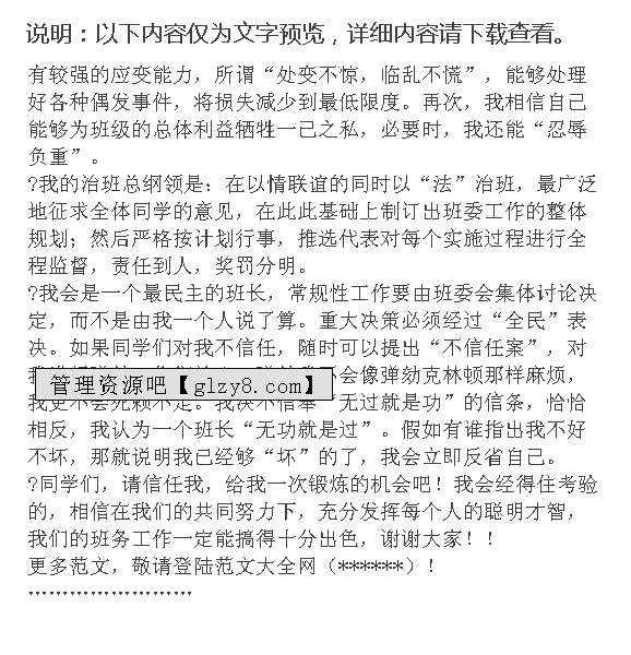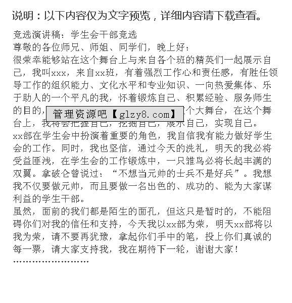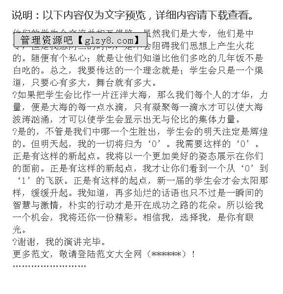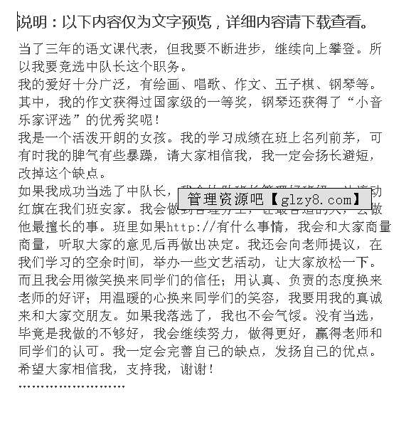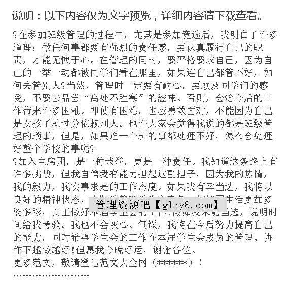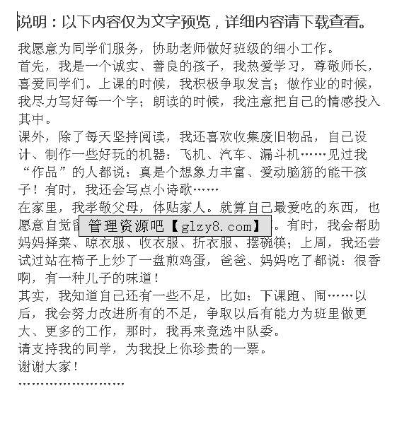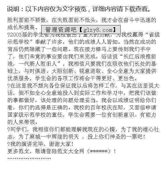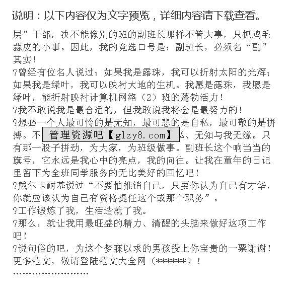 首页 > 管理资料 > 范文大全 > 竞选演讲稿范文