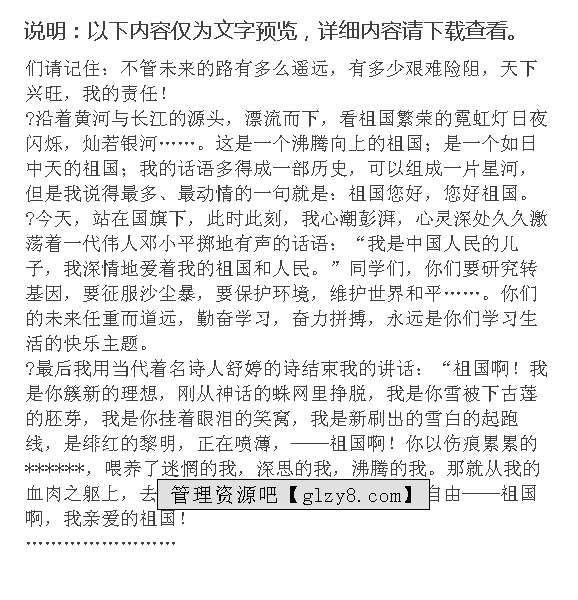 首页 > 管理资料 > 范文大全 > 爱国演讲稿范文