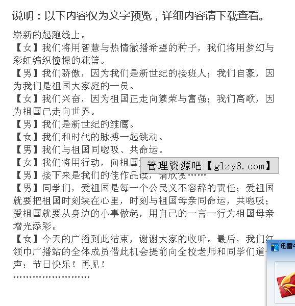 首页 > 管理资料 > 范文大全 > 广播稿范文