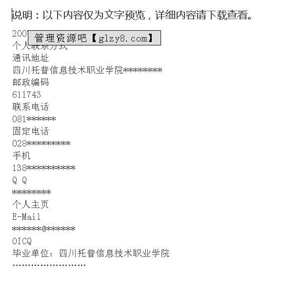 首页 > 管理资料 > 人力资源 > 个人简历模板